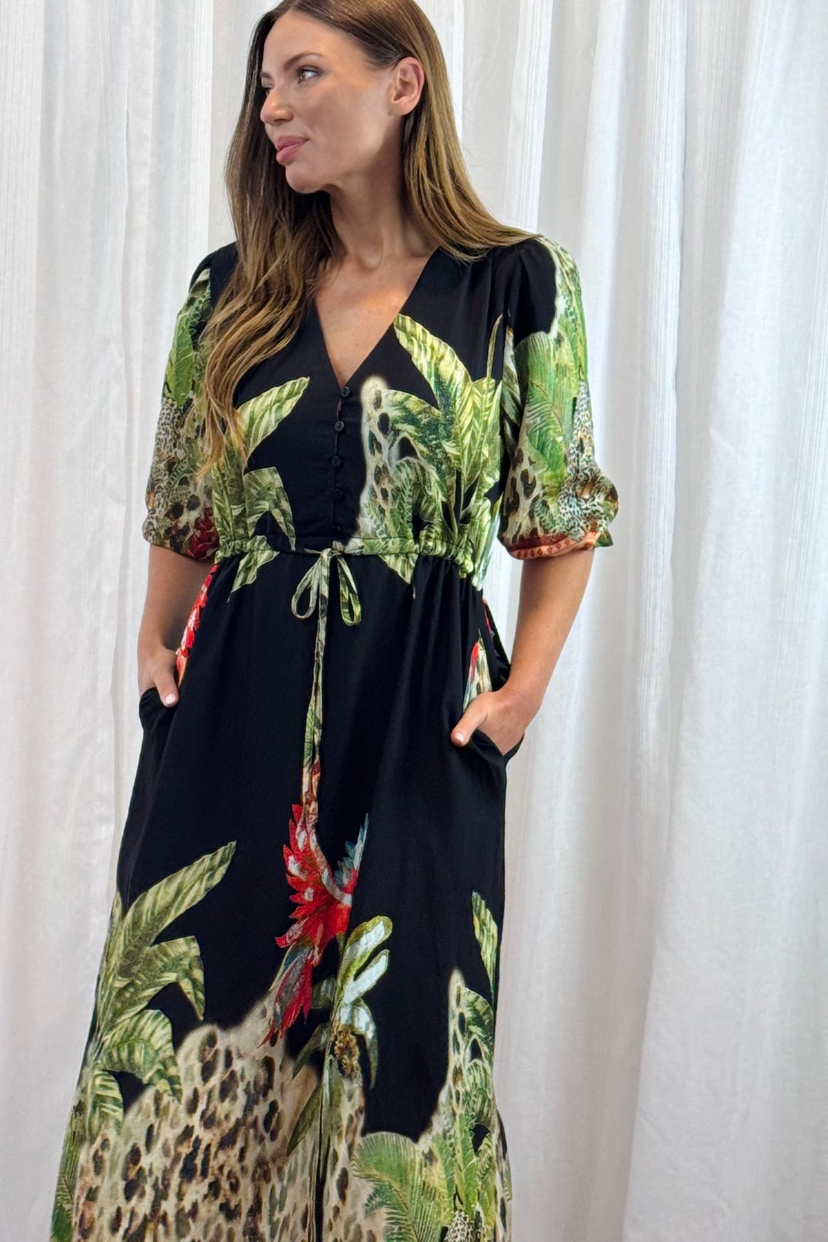 Our new drawstring  black maxi multi print  dress  has just arrived. A great versatile , lightweight fabric  with elastic drawstring waist . Wear this midi out for a brunch with friends , it’s the perfect day or night  dress , just add cute heels to complete the look